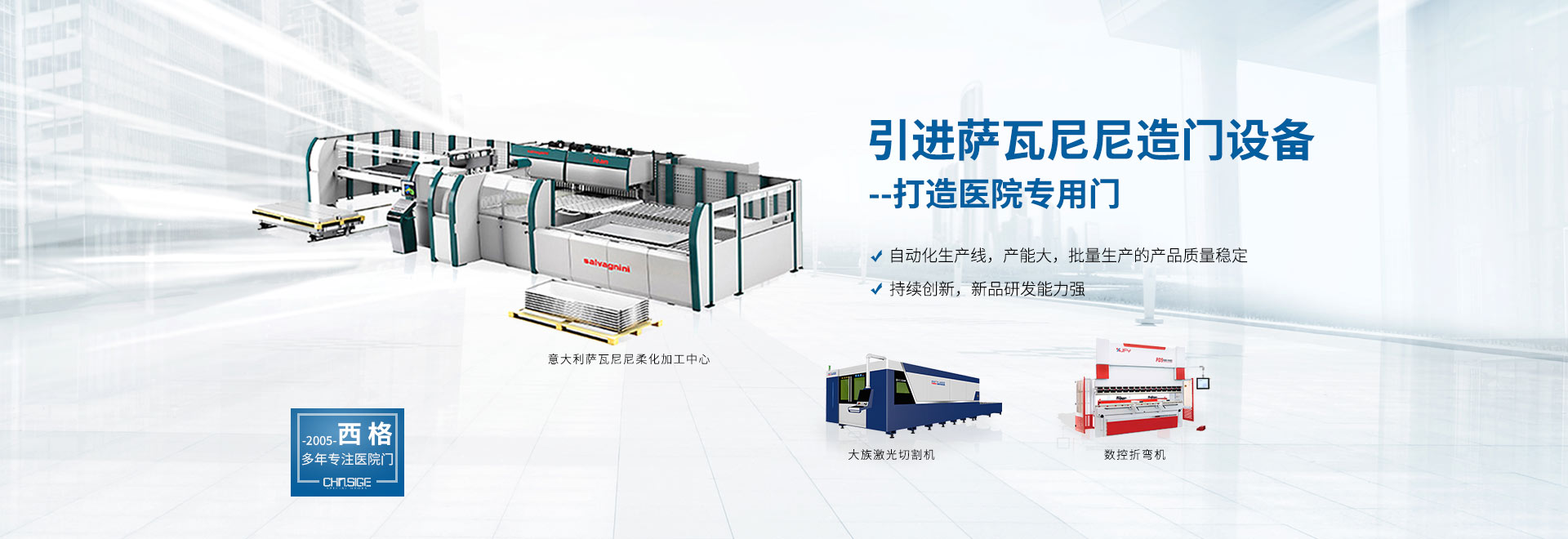 西格,國內大型醫(yī)院門生產基地,斥巨資建立 HPL和鋼質兩大材質的標準化醫(yī)院門生產線, 囊括行業主流醫(yī)院門品類,材質齊全,選購無憂。